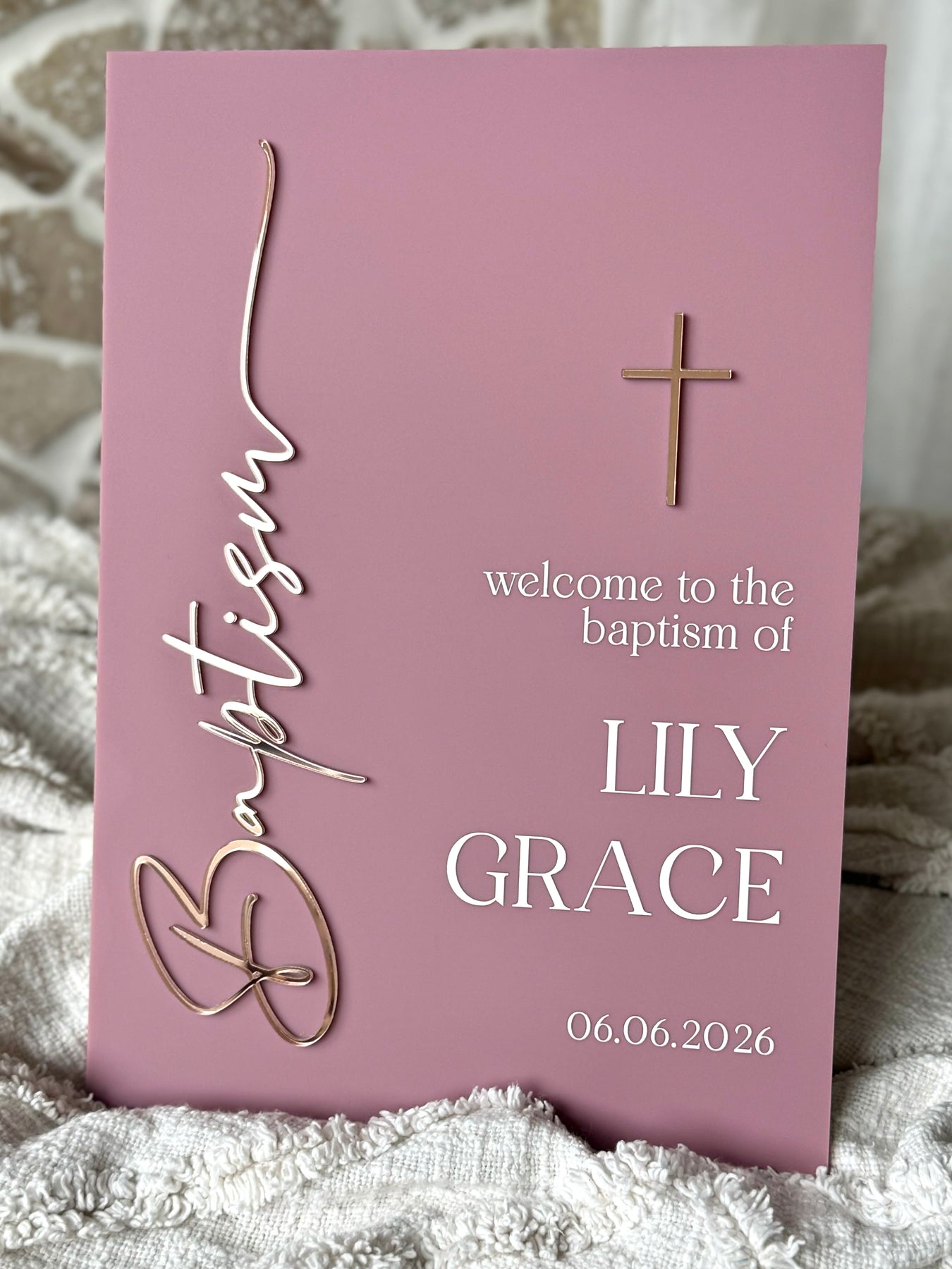 Welcome family and friends to a meaningful and special day with our Acrylic Baptism Welcome Sign. Thoughtfully designed to mark this beautiful milestone, this sign creates a warm and elegant entrance for your child’s baptism celebration.