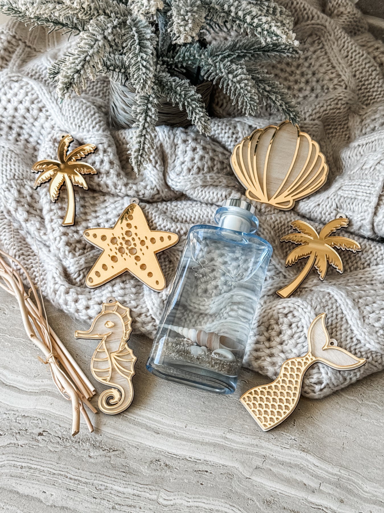 Bramble Bay’s Sea Salt Luxury Diffuser is a refreshing burst of apple and honeydew combined with lily of the valley and warm amber to perfectly capture the essence of a romantic seashore. Recreate this freshness in your own home with our 150ml Reed Diffuser.  This elegant glass vessel is accented by real sand and shells along with natural willow sticks.  We use 100% fabric reeds to release fragrance.