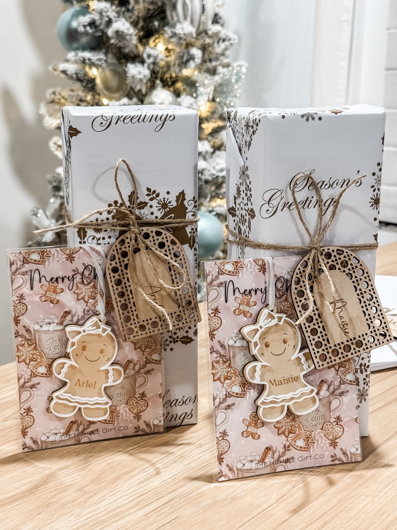 Celebrate the festive season with our Gingerbread Man Layered Personalised Ornament. Crafted from laser-cut acrylic layered onto plywood, this charming ornament can be customised with a name, making it a delightful keepsake for your Christmas tree or a thoughtful gift for loved ones.