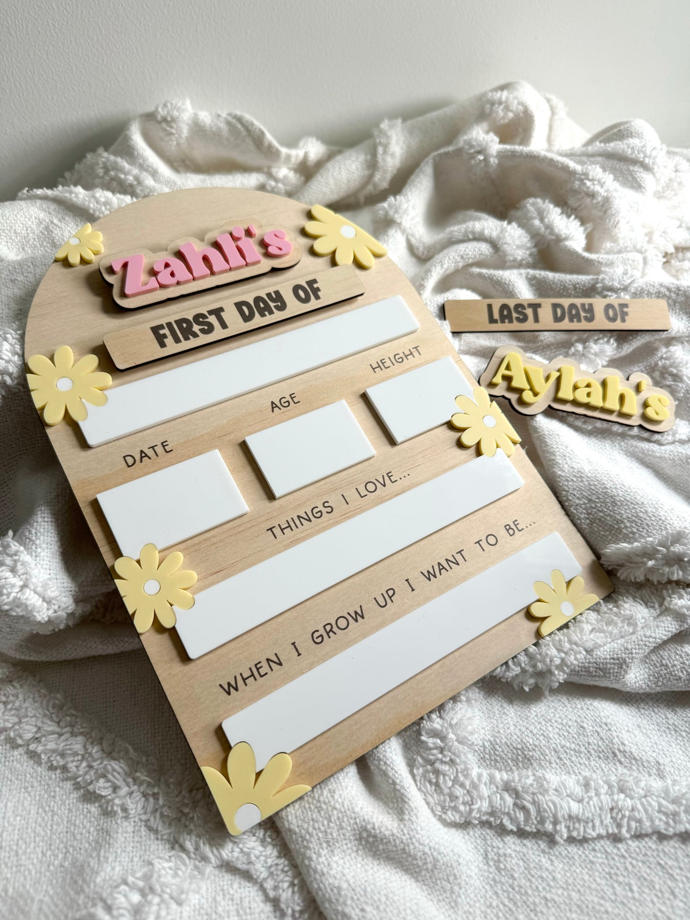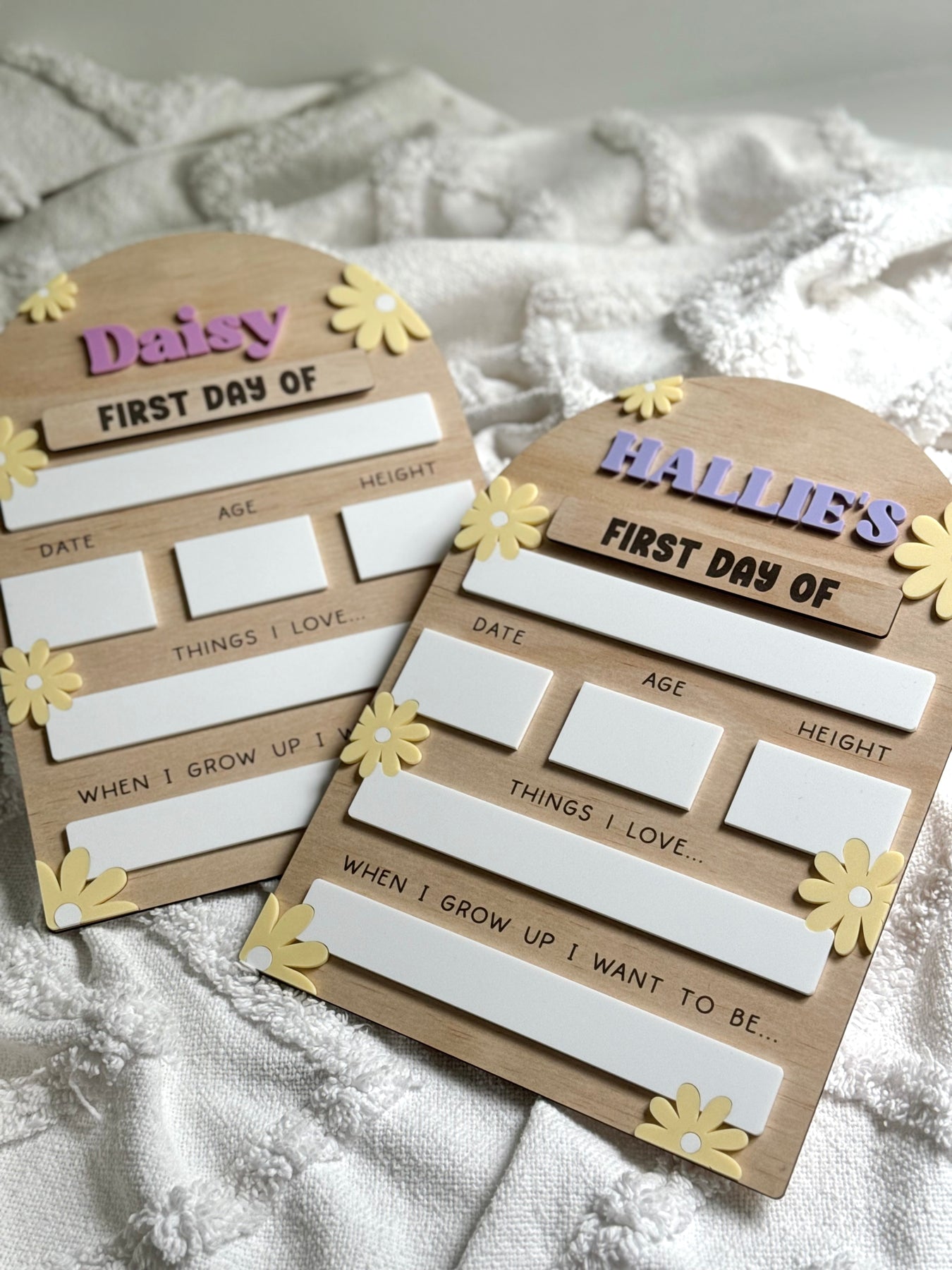 Celebrate the start of a new school year with our Wooden First Day Board featuring layered acrylic daisies — a timeless keepsake designed to capture those big milestones in the sweetest way.