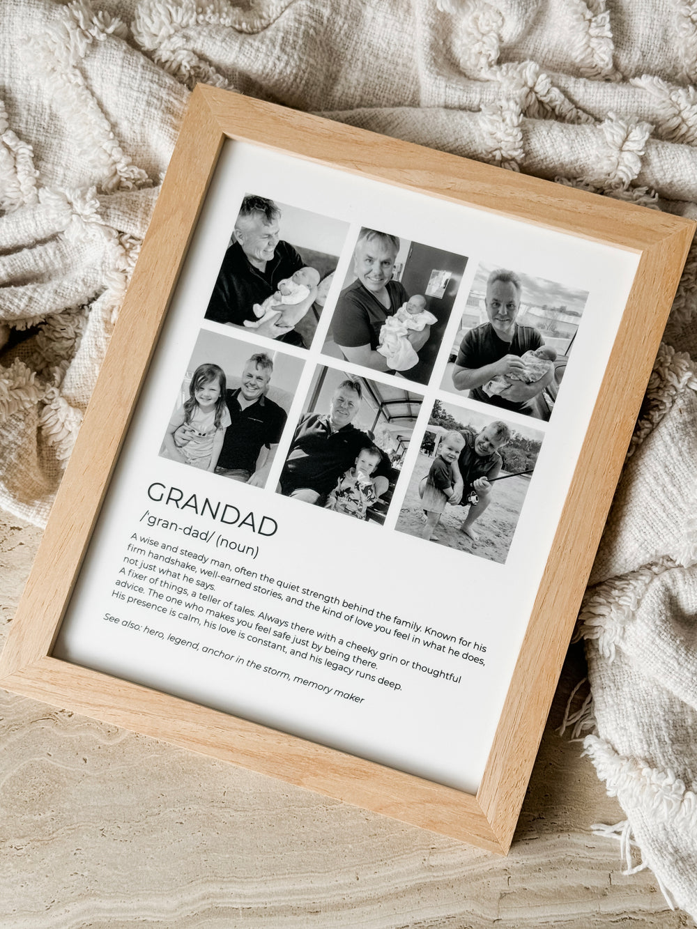 Show Grandad just how much he’s loved with a stunning photo collage frame featuring your chosen Grandad Definition and 6 UV-printed photos – crisp, vibrant, and permanently printed directly onto the frame for a polished finish.