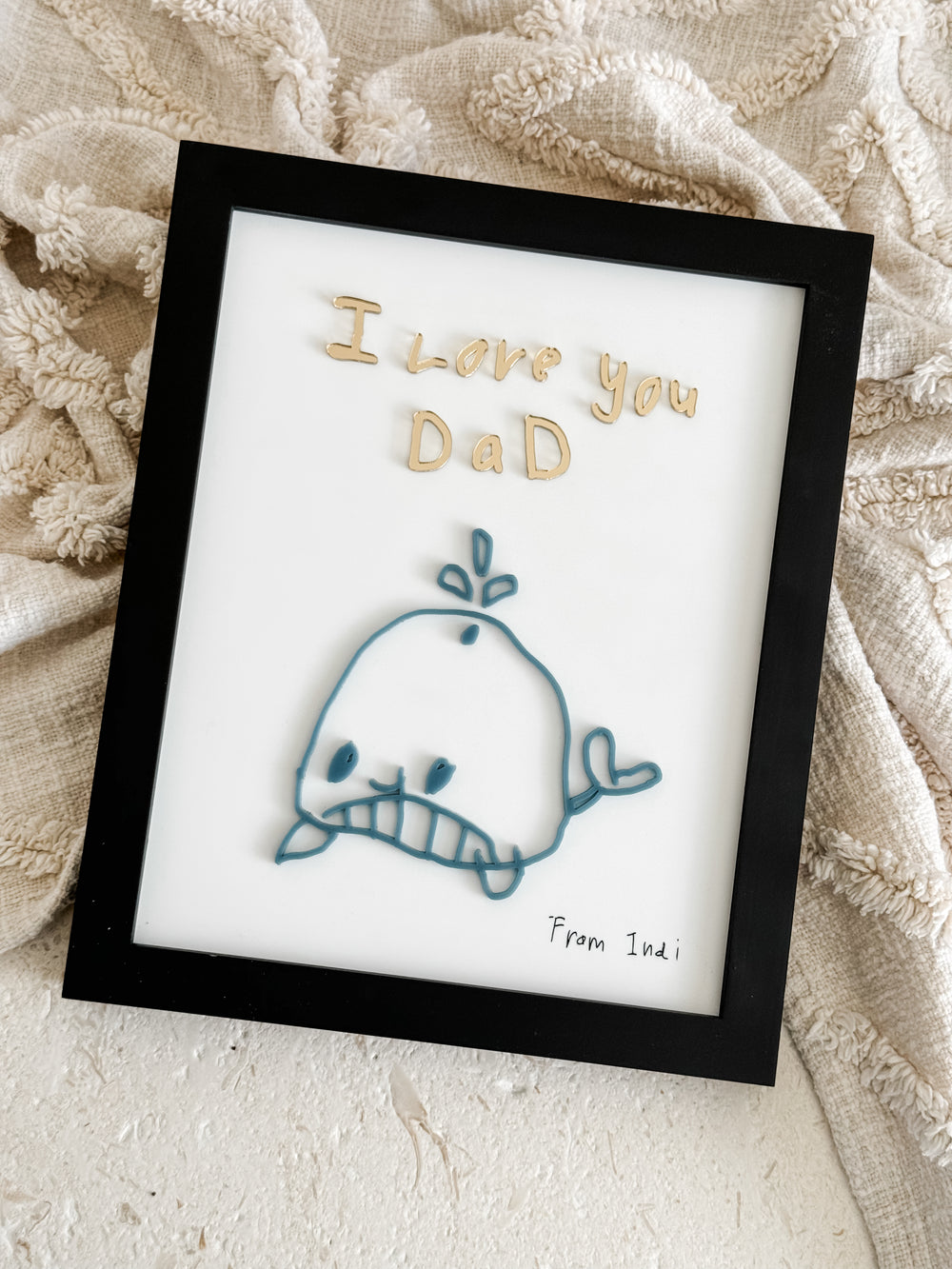 Does your little one love drawing? Showcase their artwork as an layered acrylic masterpiece to treasure forever! Laser cut acrylic and framed.