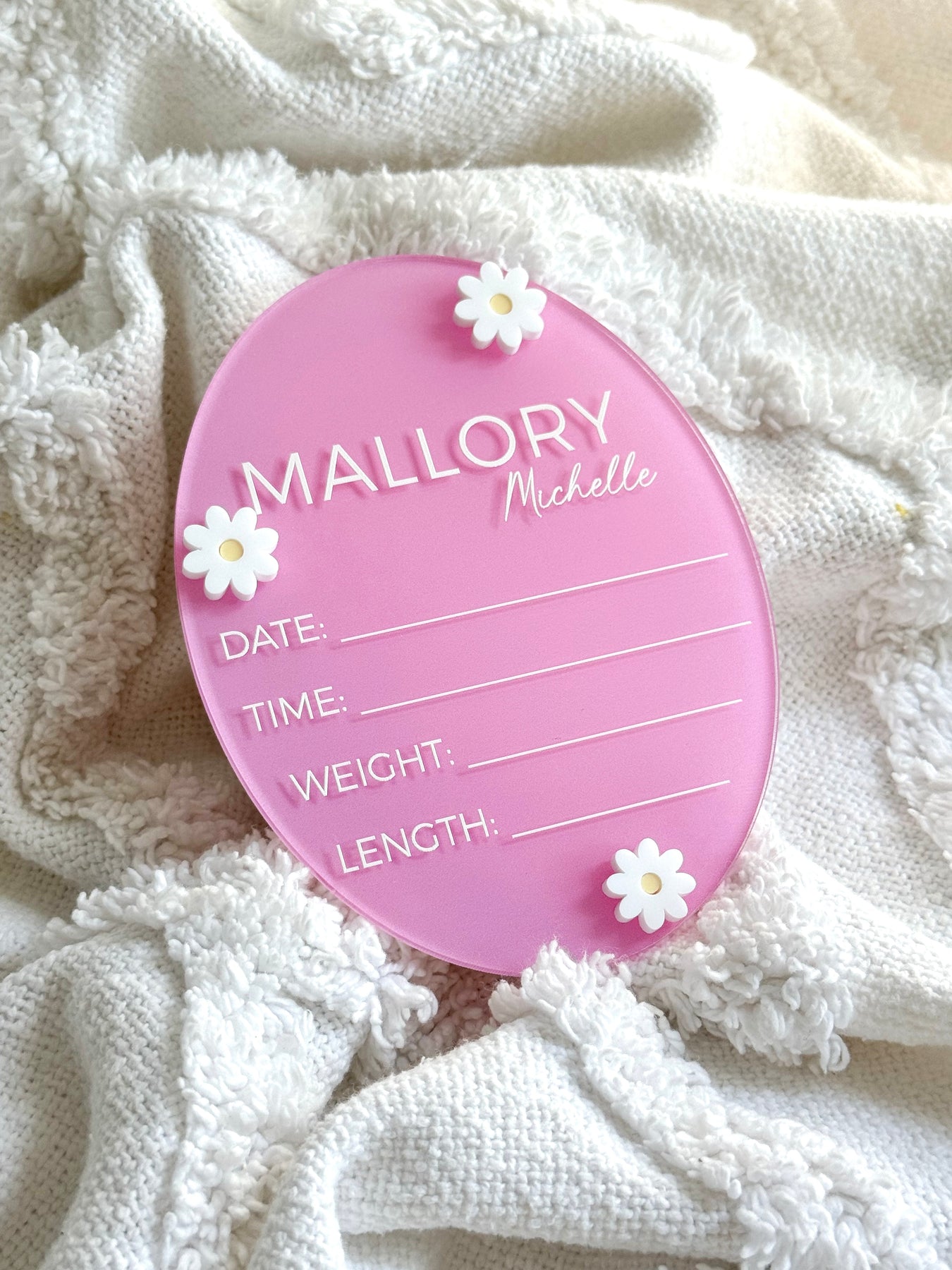 Baby Announcement Plaque with Daisies details: