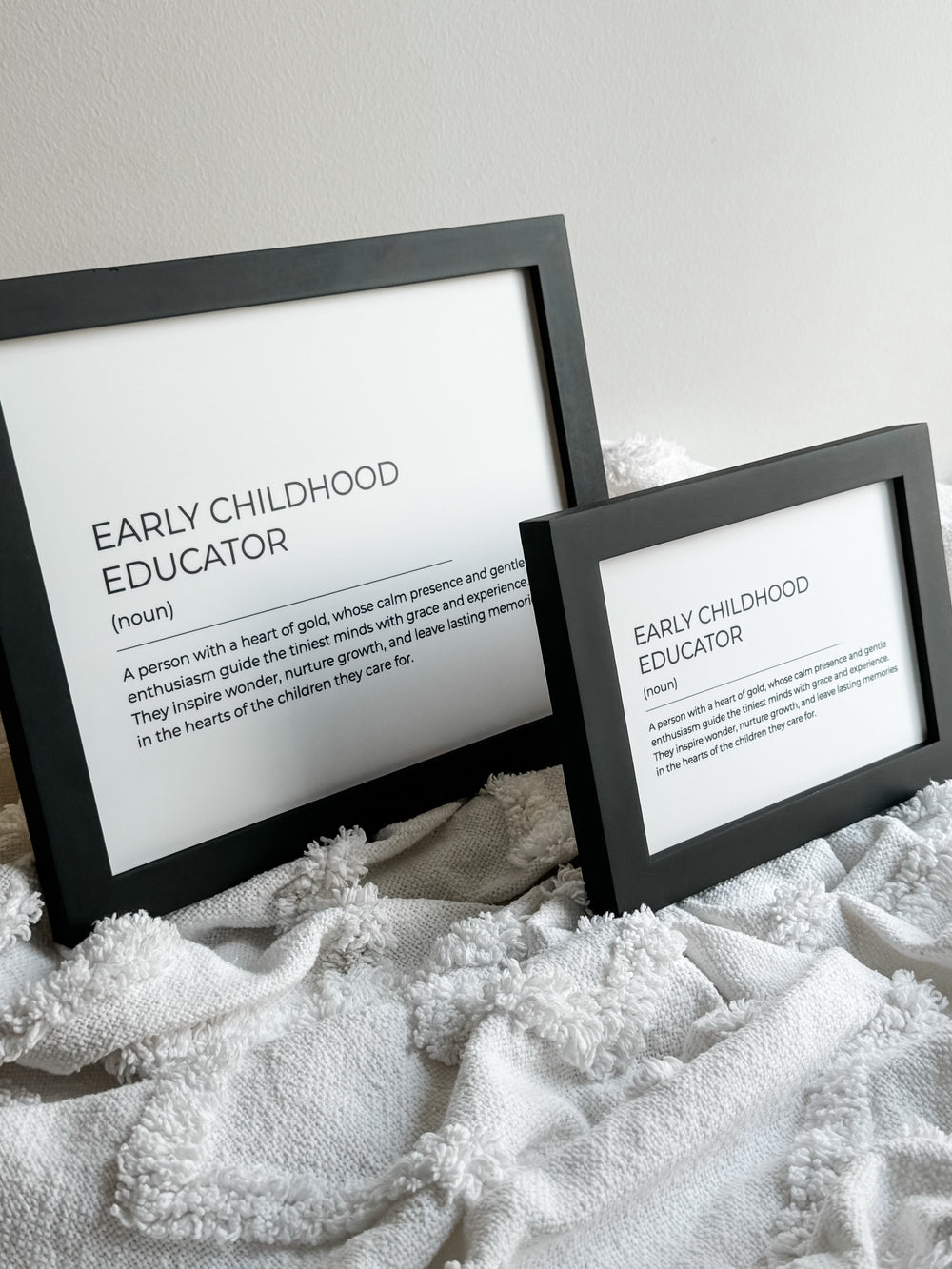 Celebrate your favourite educator with this Educator Definition Frame! It features a fun, witty description that captures the magic, patience, and occasional chaos of looking after our littlest learners. Perfect for brightening a classroom or home office, this frame makes a thoughtful and charming gift that shows teachers how appreciated they truly are. A delightful way to say “thank you” with a smile!