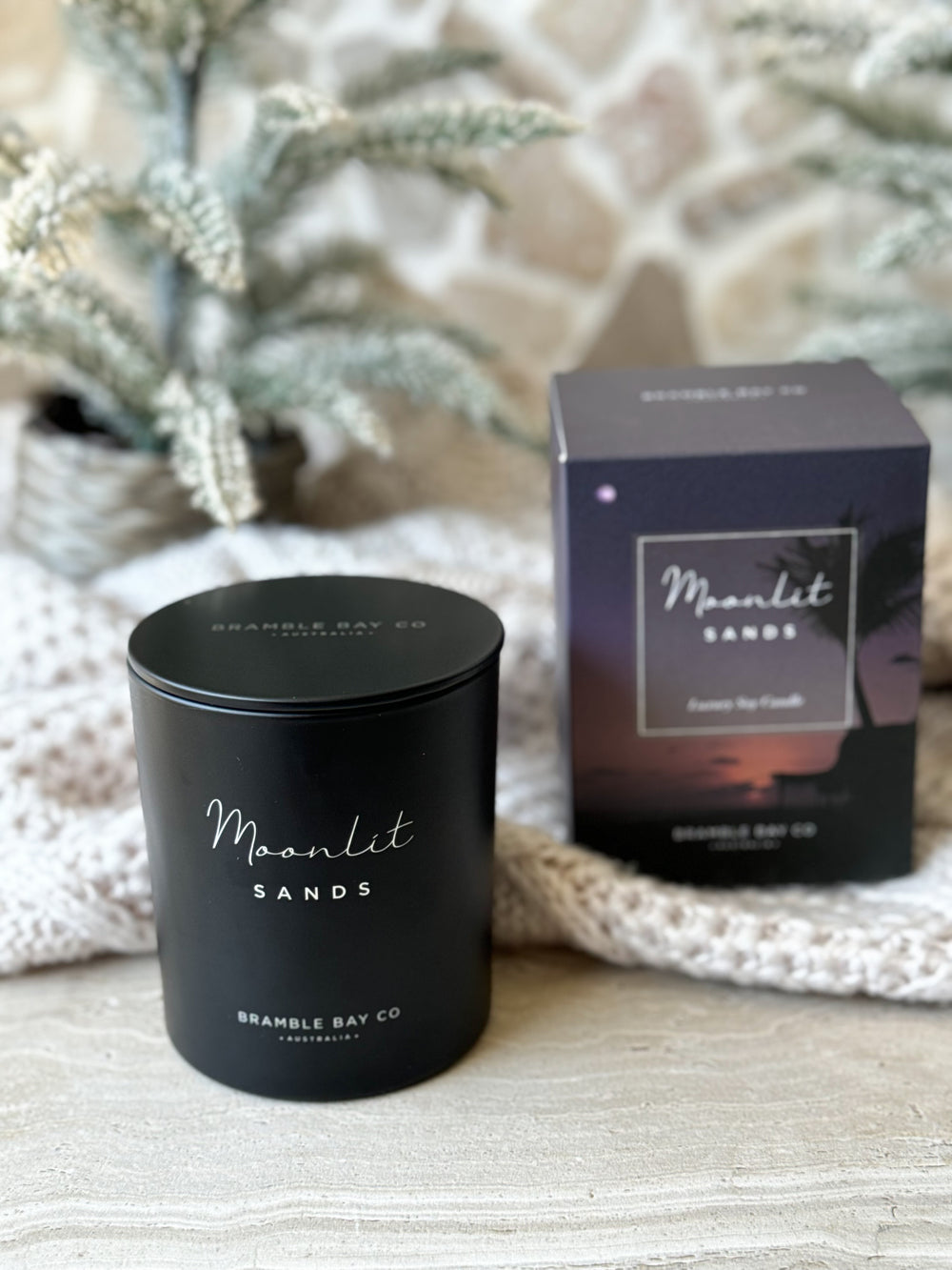MOONLIT SANDS The essence of sweet almond, delicate rose, and indulgent vanilla converge to create a captivating ambiance.