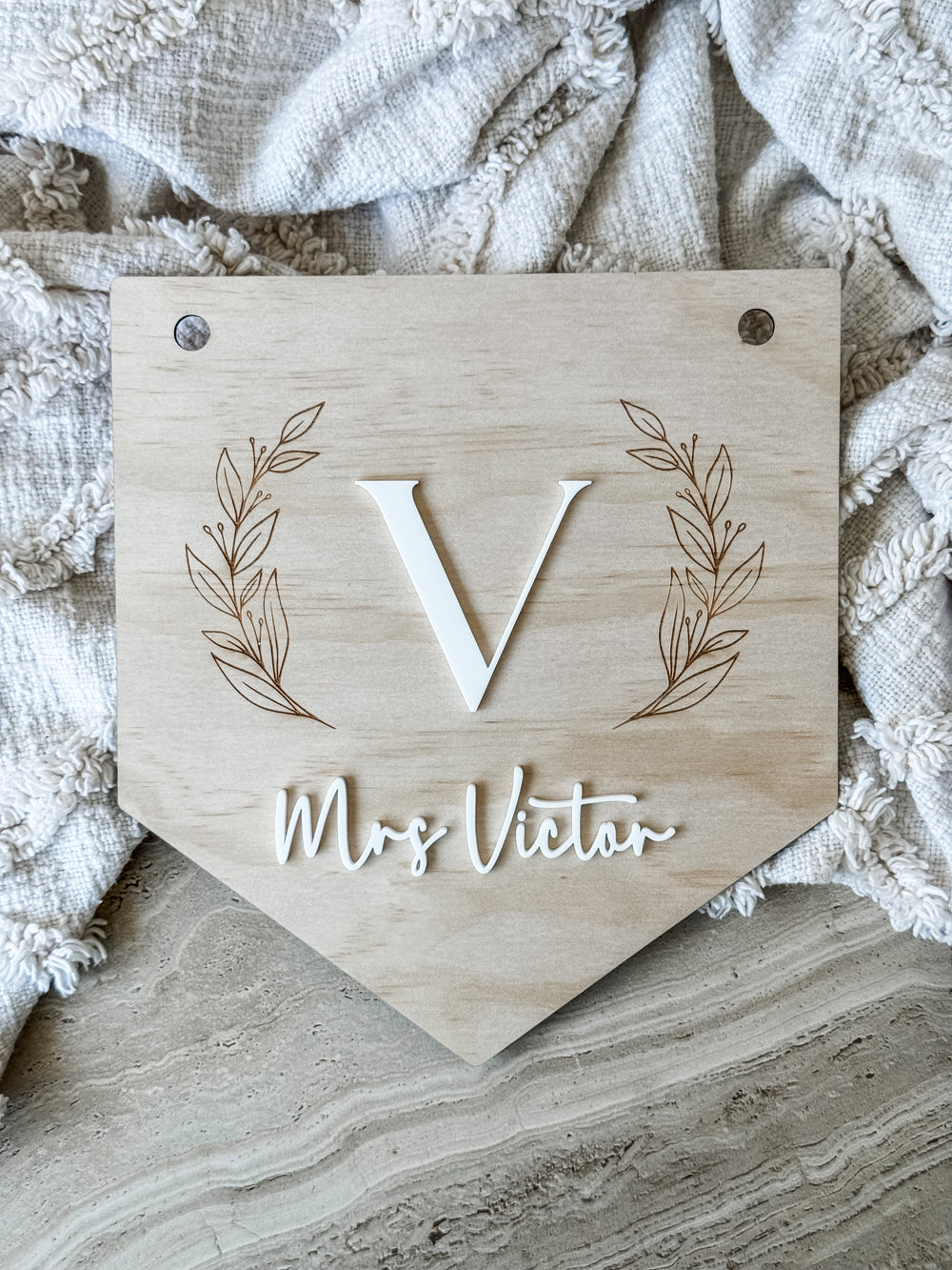 Elevate your home or office decor with our Monogram Banner. Made of 3mm wood, this bunting features a customizable monogram design that adds a personal touch to any room.