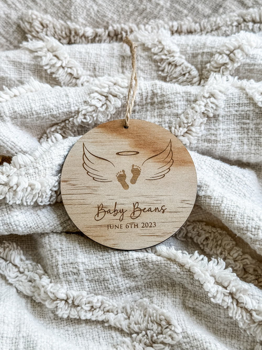 Remember your sweet little angel with our timeless personalised wooden ornament.