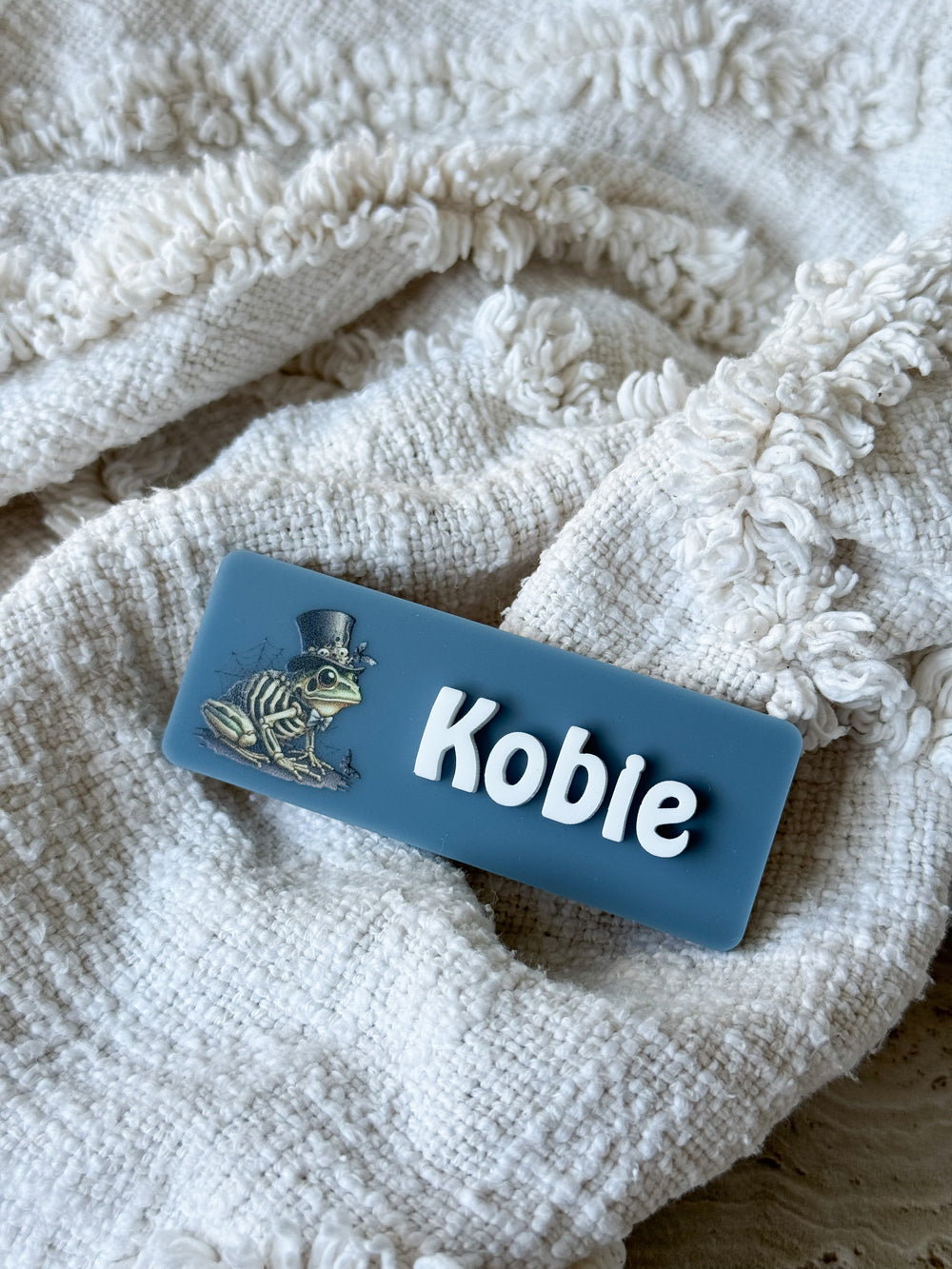 - The occupation name is engraved into the acrylic and then painted with acrylic paint—if it gets wet, it may bleed or fade.