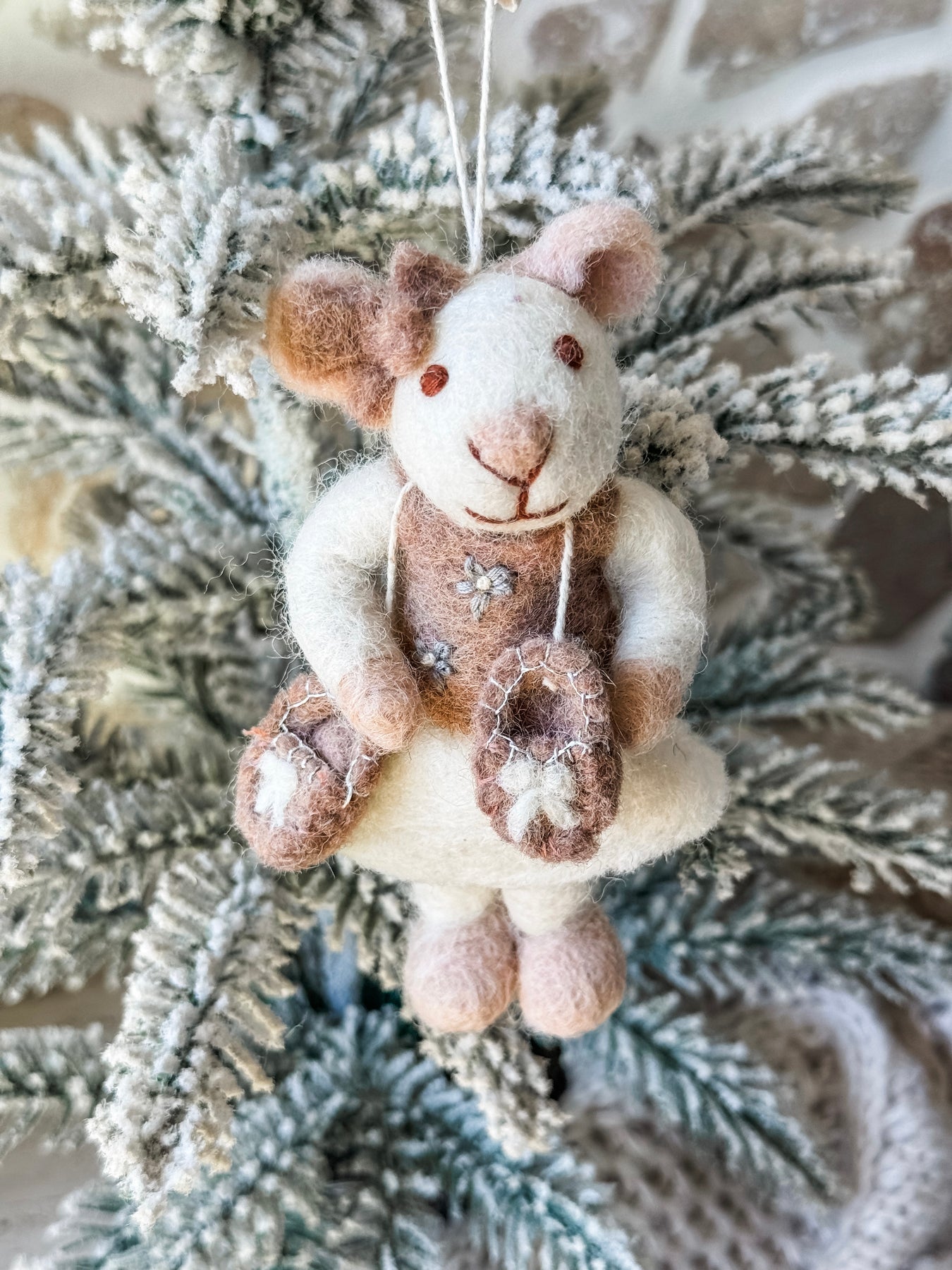 Sweetly poised and full of charm, the Gry & Sif Ballerina Mouse – Small White is a delightful addition to any festive or children’s space. Handcrafted from pure New Zealand wool, this petite felt mouse wears a soft pink ballet top, a matching bow and holds her tiny ballet slippers ready for a magical performance.
