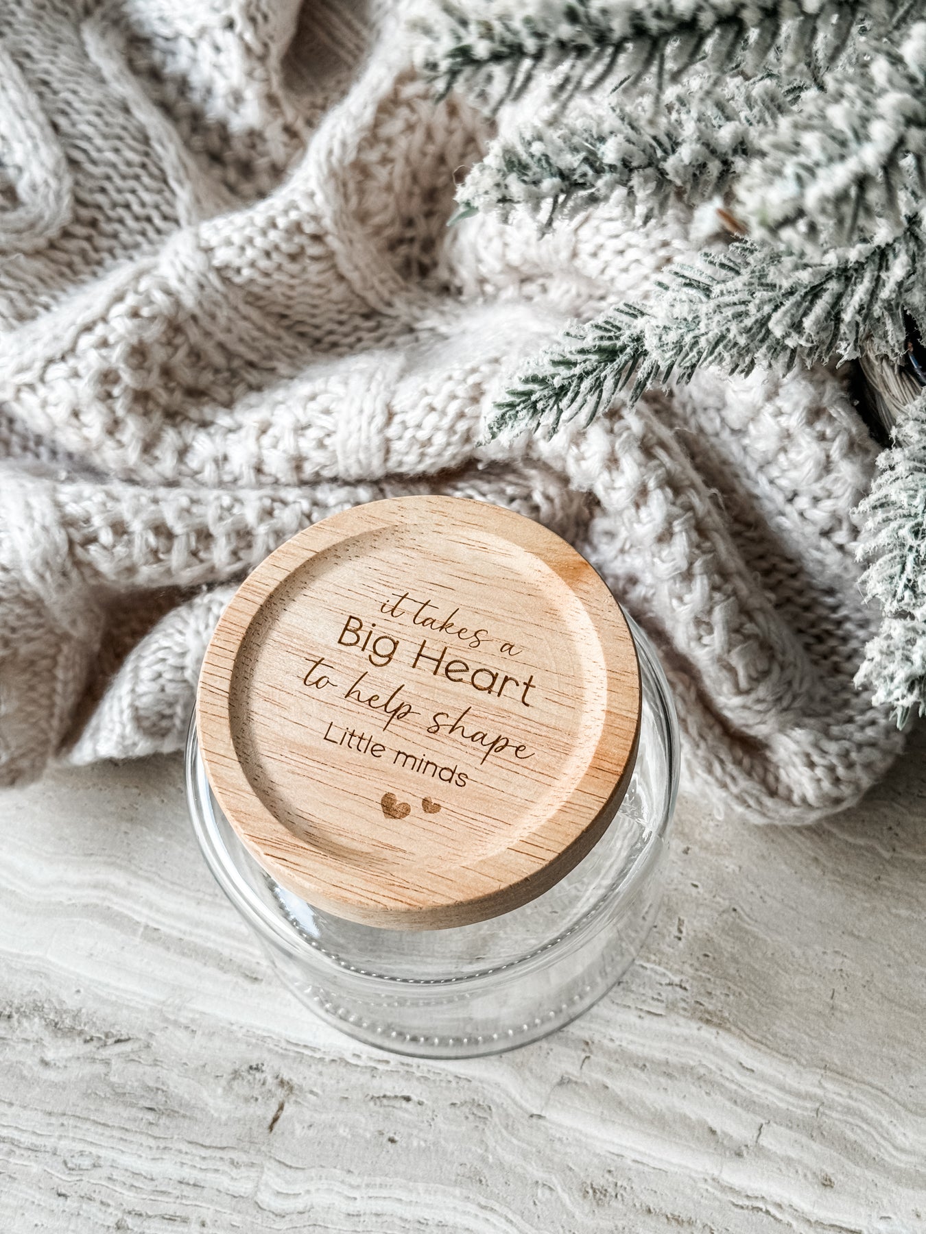 Show your appreciation for your child's teacher with our Engraved Lolly Jar. This unique and thoughtful gift features a sweet quote and optional personal engraving, making it the perfect way to say thank you. Fill it with their favourite treats and show them how much they mean to both you and your child.