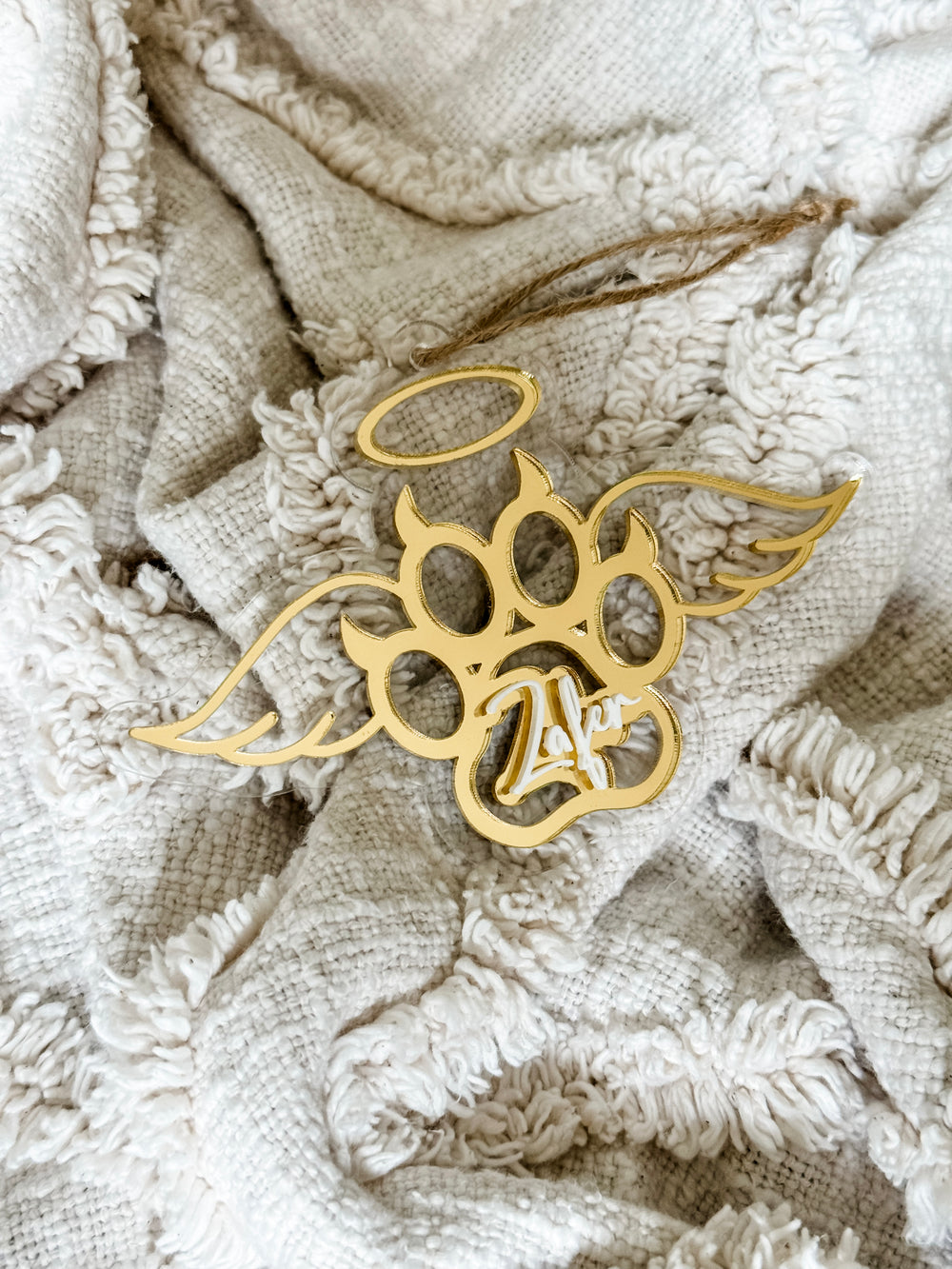 Honour your furry friend's memory with our Cat Paw Print Memorial Ornament. Made with laser-cut acrylic, this beautiful Christmas ornament features a paw print design to pay tribute to your beloved furry friend. It is a touching way to remember your pet during the holiday season.